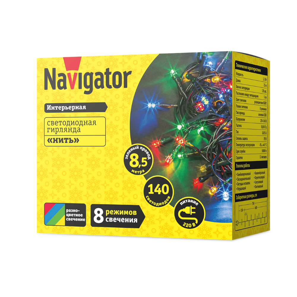 Гирлянда NGF-S01-140RGBY-5-8.5m-230-C8-G-IP20