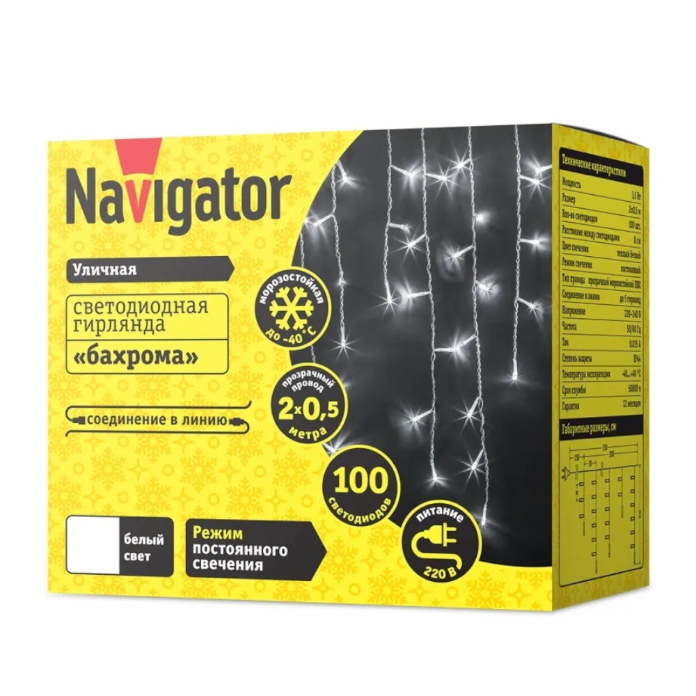 Гирлянда светодиодная новогодняя NGF-I01-100CW-8-3.5m-230-TR-IP44