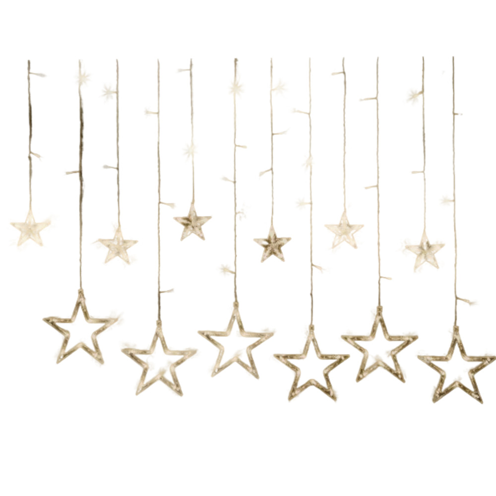 Гирлянда светодиодная новогодняя NGF-D025-02 бахрома звезды WW 138 2.5х0.6 м IP20 TR используется в качестве декоративной подсветки для помещений.