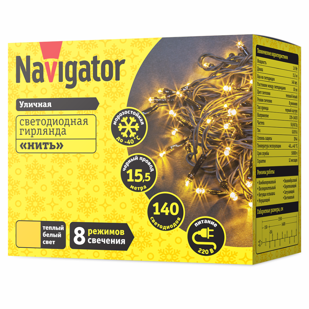 Гирлянда NGF-S01-140WW-10-15.5m-230-C8-G-IP44