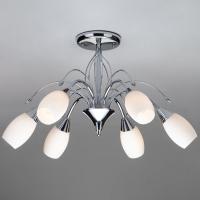 Модель отлично подойдет для установки на потолок в гостиной, оформленной в стиле флористика. Производитель Eurosvet рекомендует использовать для устройства лампы накаливания с цоколем E14 и мощностью 40 W. Прибор произведен с использованием материалов: стекло и металл и может использоваться для натяжного потолка. Основным цветом товара является белый и хромовый.
