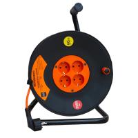 Длина кабеля - 50 метров. Удлинитель оформлен 4 розетками. Сечение провода - 2х1 мм.