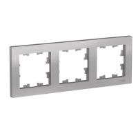 Рамка Systeme Electric (ранее Schneider Electric) серии AtlasDesign в цвете алюминий трёхместная. Устанавливается в вертикальном и горизонтальном положениях. Лицевые детали из качественного ABS-пластика, устойчивого к царапинам и УФ-излучению. Позволяет гармонично вписать электроустановочное изделие в интерьер помещения.