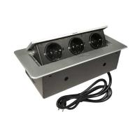 Встраиваемая выдвижная розетка TORO GRAY (серебристая, на 3 розетки) представляет собой металлический прямоугольный розеточный блок на 3 EURO розетки. При нажатии на кнопку на лицевой части розетки, происходит плавное открытие. Качественная порошковая окраска корпуса позволяет долгое время сохранить внешний вид нового изделия, розетка не царапается. Данная модель готова к эксплуатации вся внутренняя разводка уже сделана на заводе, в комплекте с сетевым шнуром длиной 1.8 м, необходимо только подключить изделие к розетки.