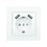 Розетка 1-местная СП с заземлением 16А белая с защитными шторками с 2 USB 2,1А Минск