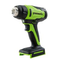 Строительный фен GreenWorks подходит для сварки бамперов и пластиковых элементов, укладки напольного покрытия из полимера, пайки медных труб и ПВХ-тканей, удаления краски, обжима термоусадочных материалов, нанесения автомобильных пленок.