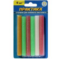 Клей для клеевого пистолета ПРАКТИКА цветной, с блестками, 11 х 100 мм, 6шт / блистер