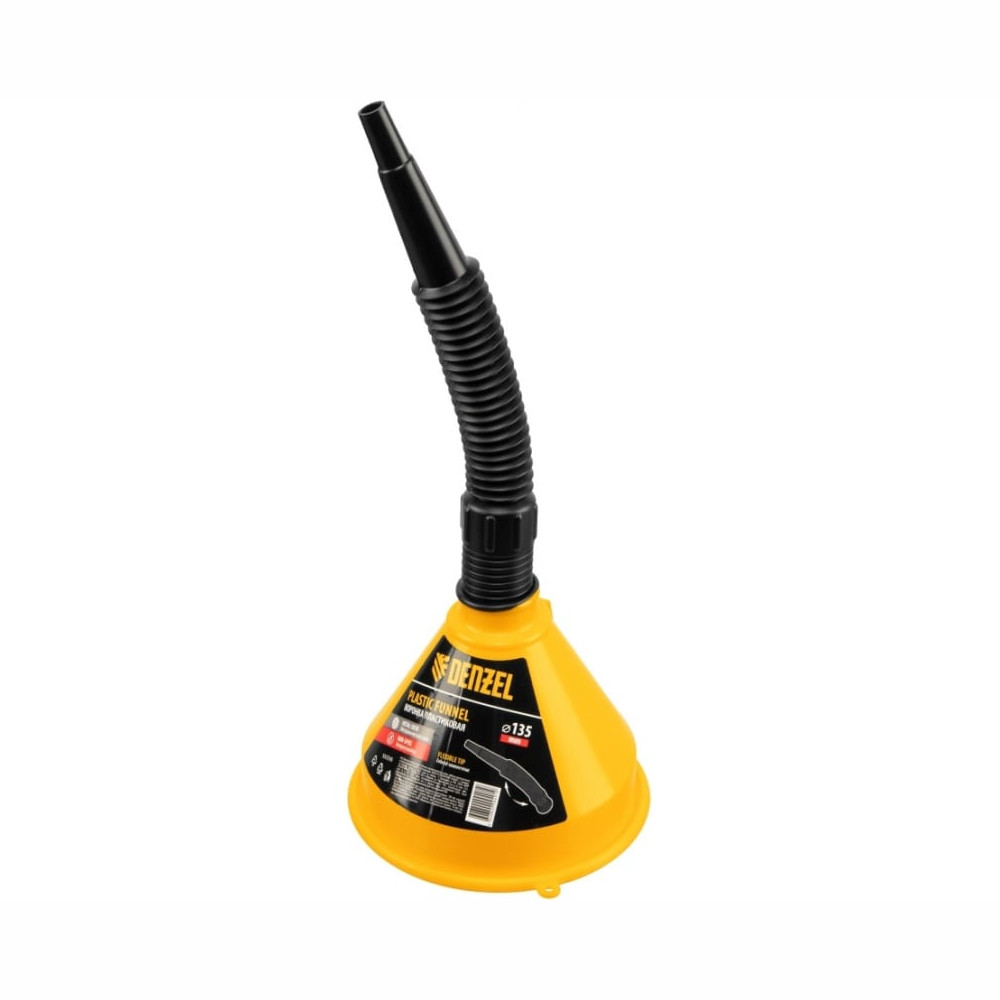 Воронка пластиковая 135 мм с металлическим ситом, гибким наконечником и непроливайкой// Denzel