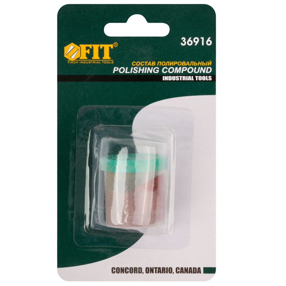 Полировальный состав FIT IT 36916 применяется совместно с фетровым кругом для полирования. Состав используется для устранения царапин, оставляя после себя ровный блеск. В состав входит смесь парафина, шлифовального порошка и стеариновой кислоты.
