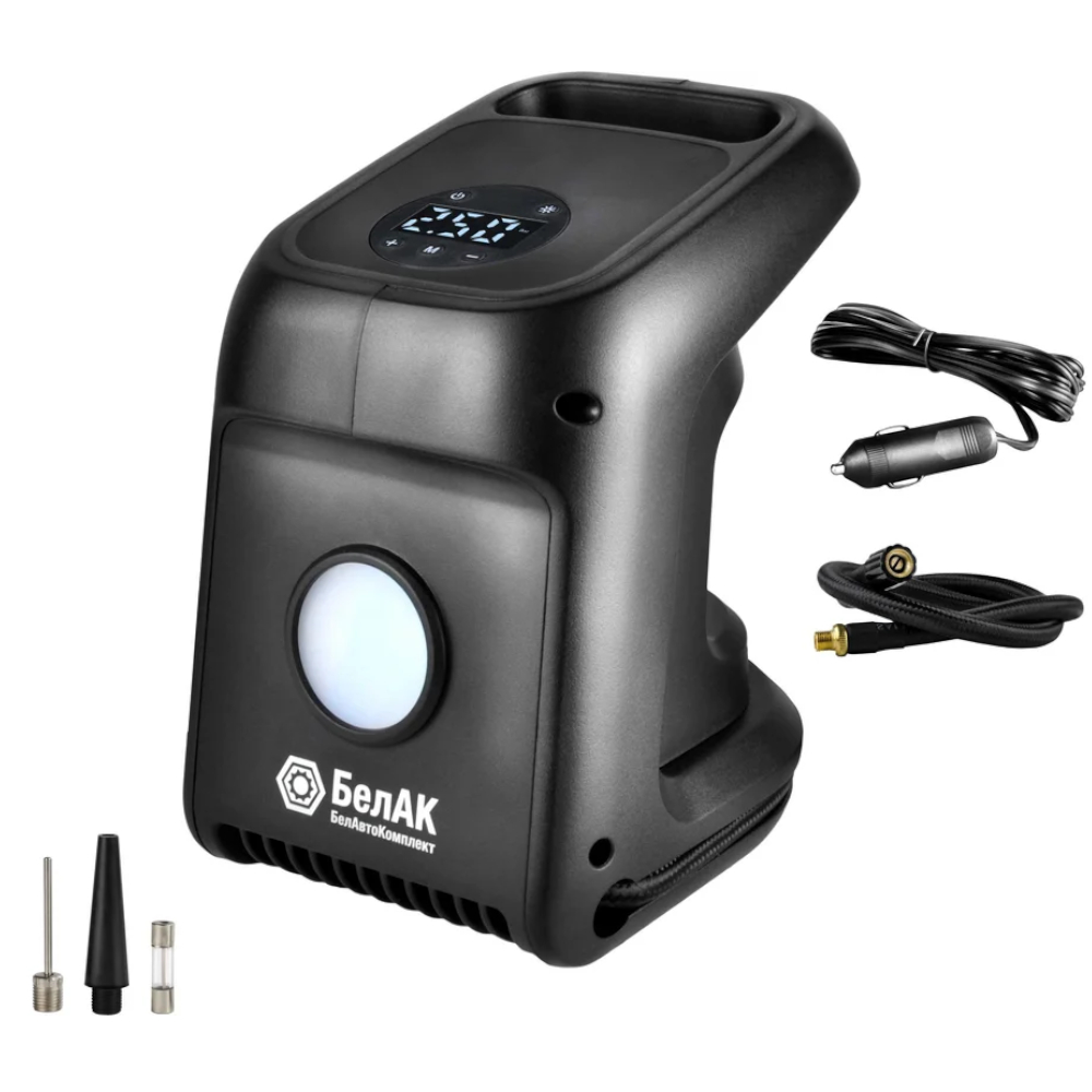 Компрессор 12V БелАК ЦИКЛОП-45Ц 45 л/мин. Манометр: Цифровой. Напряжение: 12 В. Давление: 6 атм. Мощность: 150 Вт. Производительность: 45 л/мин. Рабочий ток: 12 А. Подключение: Прикуриватель. Вес: 1,3 кг.