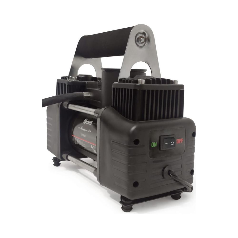 Насос для автомобиля имеет встроенный мощный LED фонарь, который облегчит работу в темное время суток. Компрессор работает с напряжением 12 вольт от прикуривателя. Шланг высокого давления для компрессора изготовлен из морозоустойчивой резины.