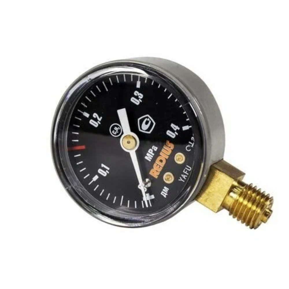 Манометр ацетиленовый REDIUS 0,4МПа - измерительный прибор избыточного давления, предназначенный для газообразных и жидких некристаллизующихся и неагрессивных сред. Измеряет давление до 4 атмосфер.