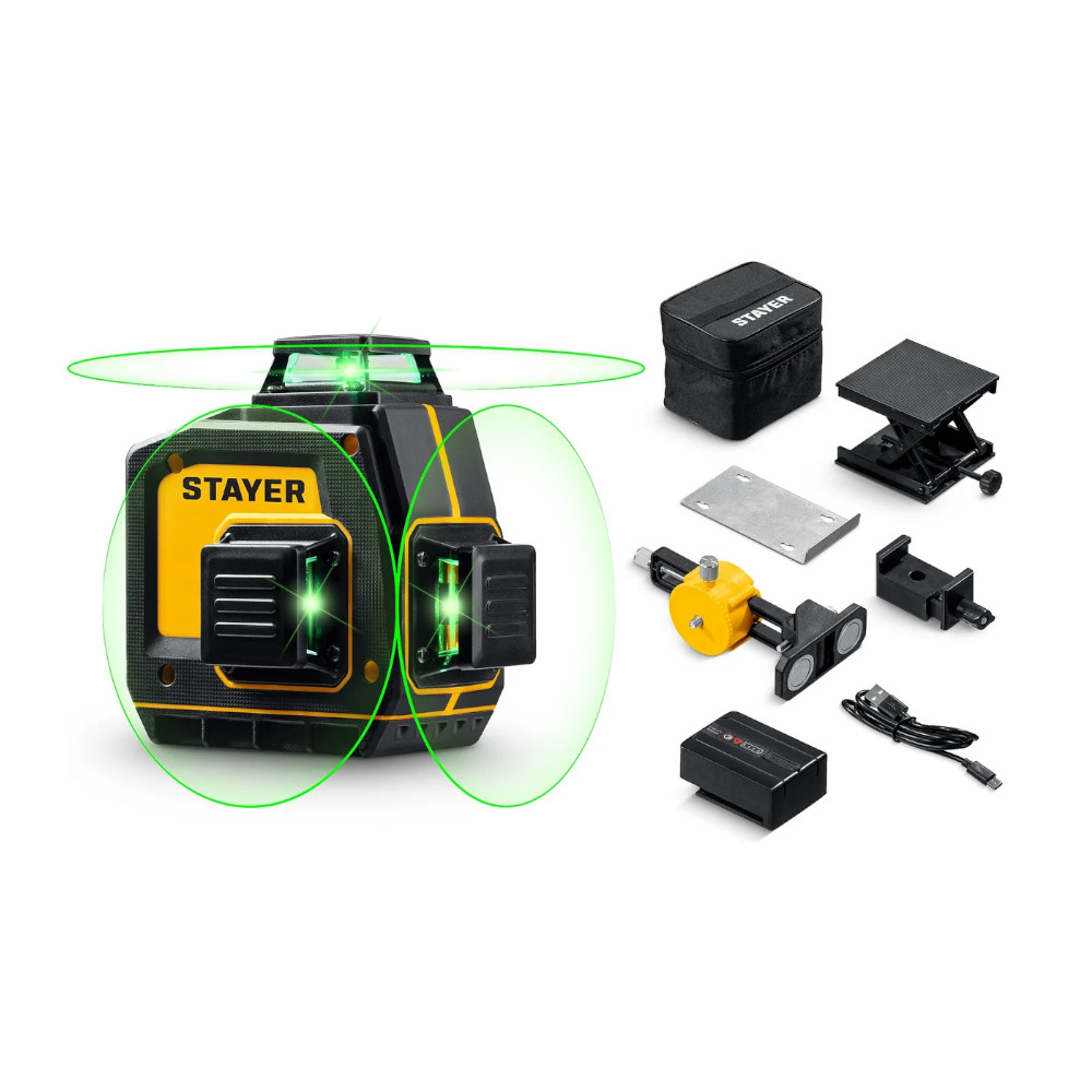 Лазерный нивелир держатель (34963-2) STAYER SL-3D #2, 50м, точн. +/-0,5 мм/м, зеленый, микролифт,