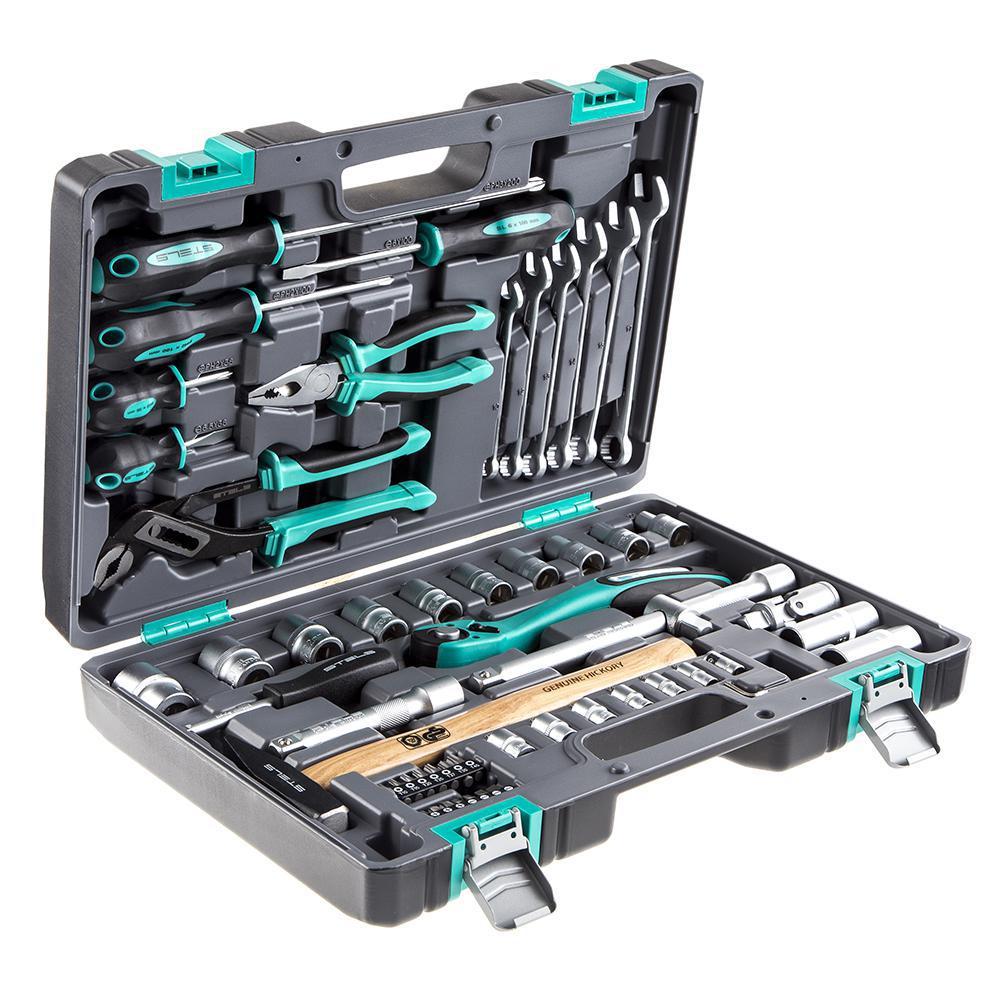 Набор инструмента 1/2", CrV, S2, усиленный кейс, 58шт STELS 14113 - оптимальный вариант для выполнения широкого спектра ремонтно-монтажных, демонтажных, столярно-слесарных и прочих видов работ дома, в саду, гараже, на производственных участках, автосервисах и станциях техобслуживания. Изделия полностью выполнены только из прочных и качественных материалов, отличаются устойчивостью к коррозии и изнашиванию.