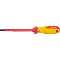 Отвертка Insulated SL6,0x150 мм MATRIX PROFESSIONAL 12920 с изолированным стержнем применяется для безопасной работы с деталями под напряжением до 1000 V. Отверстие на конце рукоятки позволяет легко подвесить инструмент. Профиль шлица SL6,0. Надежному удержанию отвертки способствует нескользящая поверхность рукоятки.