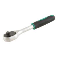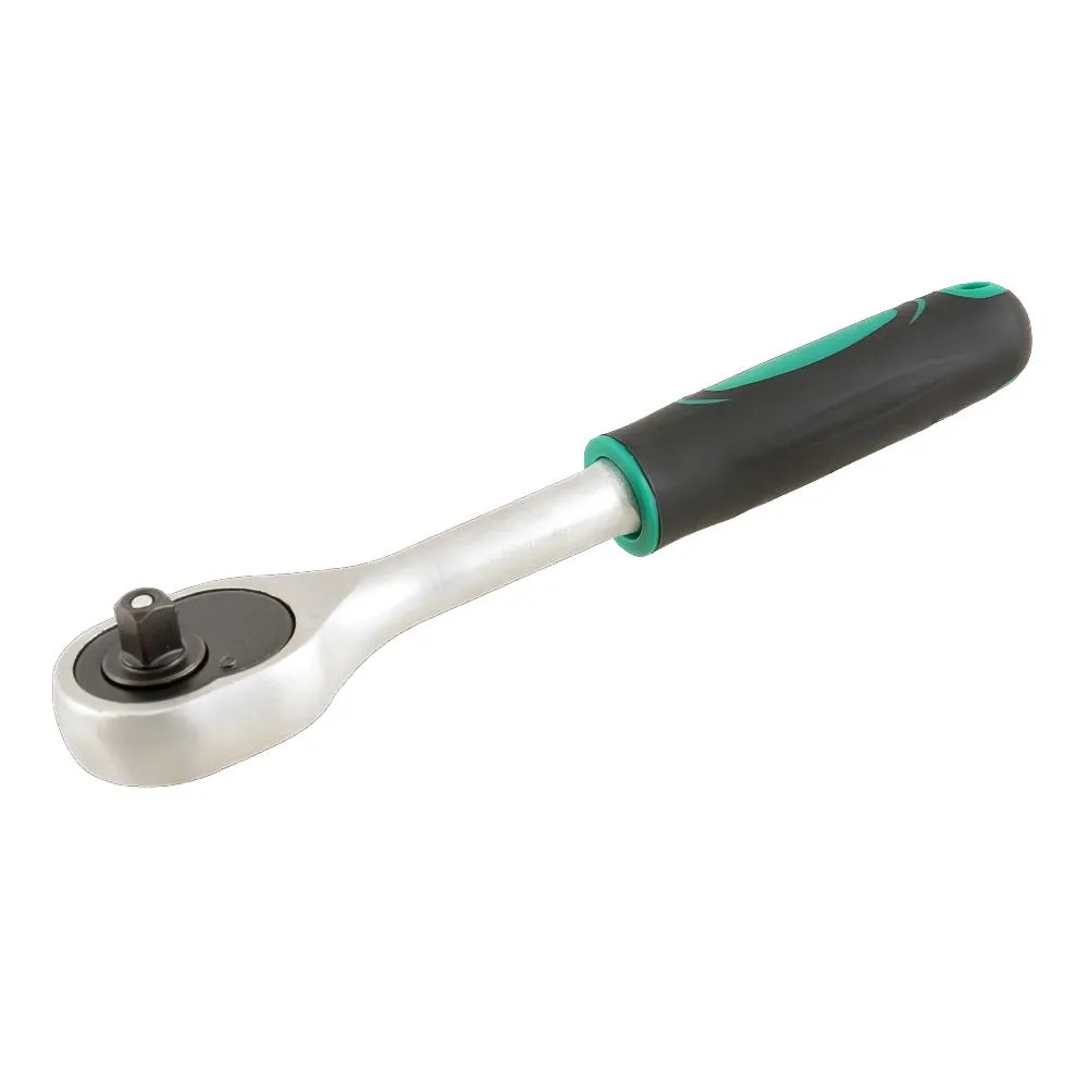 Флажковый ключ трещотка с посадочным размером 1/4 дюйма и 24 зубьями. Прорезиненная рукоятка обеспечивает надежный хват и предотвращает скольжение, что повышает безопасность и комфорт при работе. Изготовлен ключ из высококачественной хромованадиевой стали.