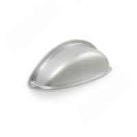 Ручка-раковина 64мм хром матовый - фигурное изделие с закругленным краем для установки на дверцы и отдельные ящички шкафов, секретеров, тумбочек и других разновидностей мебели. Подходит для обустройства дверей без функционального замка (защелки) либо монтируется отдельно от него.
