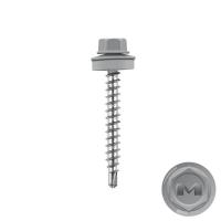 Кровельный саморез по дереву Daxmer 4,8x50 RAL 7024 (150) сверло №1 служит для крепления низкопрофильных или утолщенных кровельных материалов к деревянной обрешетке. Модифицированный шуруп изготавливается из углеродистой стали С1022 с антикоррозионным покрытием и окраской. Крепеж имеет мощный высокопрофильный резьбовой стержень диаметром 4,8 миллиметра. Длина метиза 50 миллиметров, с одного края есть сверло для облегчения пробивки тонкой металлической кровли, а с другого шестигранная головка. Размер биты под кровельный саморез - 8 миллиметров. Комплектная прокладка epdm гарантирует герметичность места фиксации, так как сырая резина отлично заполняет пустоты и затвердевает.