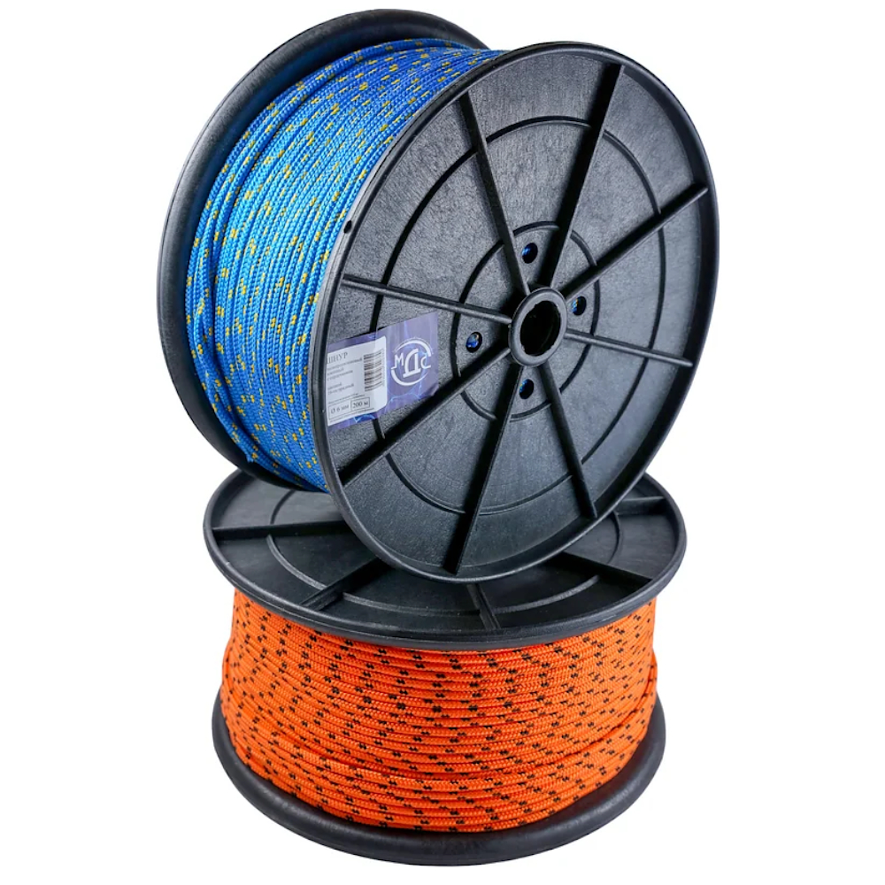 Шнур полипропиленовый плетеный 6мм 16пр. с сердечником на 100% состоит из полипропилена. Изготовление из первичного сырья и использование сердечников из крученых нитей, позволяет изделию держать нагрузки в двое превышающие аналоги существующие на рынке. В процессе изготовления нитки, используются качественные красители и стабилизаторы, что в свою очередь делает веревку не только прочной, но и устойчивой к кислотам и ультрафиолету, позволяет не впитывать влагу, что очень удобно при использовании ее на воде. Шнур из полипропилена используется абсолютно в любой сфере учитывая разрывные характеристики.
