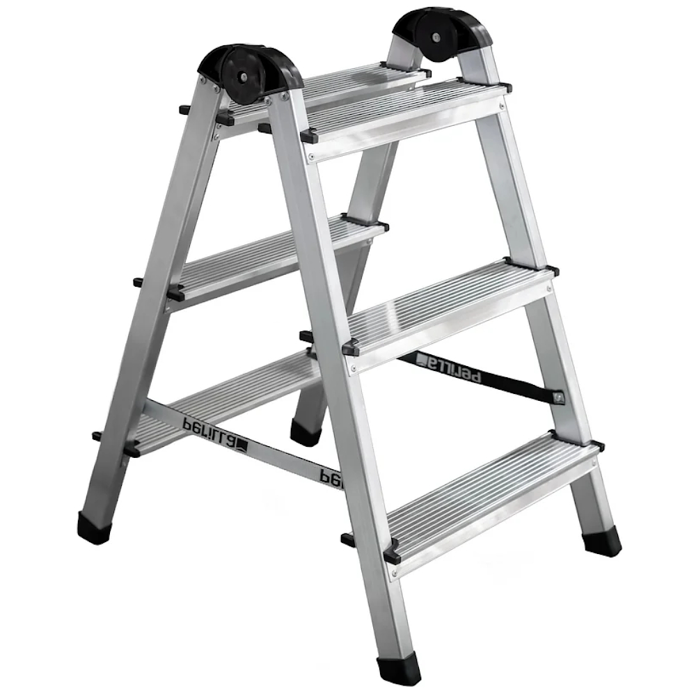 Алюминиевая 3-х ступенчатая двухсторонняя стремянка Perilla 111403 активно применяется в бытовых условиях, на производстве и строительных площадках. Ступени данной алюминиевой стремянки достаточно широкие. Имеют специальную эргономичную форму, которая эффективно предотвращает скольжение, а алюминиевые профили стоек прочно удерживают всю конструкцию в равновесии. Сложенная стремянка занимает очень мало места, поэтому хранить ее удобно. Повышенная устойчивость стремянки достигается за счет специальных противоскользящих заглушек.