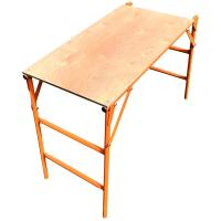 Ножки столика – лестница с двумя ступеньками шириной 42 см, по которой удобно подниматься рабочую площадку. Она находится на высоте 78 сантиметров от пола. Благодаря этому на нем можно проводить любые работы, к примеру, клеить обои, штукатурить стены или потолки, вкручивать лампочку в плафон, на высоте до 2,7 метров.