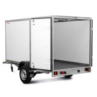 Фургон изготовлен из многослойной фанеры, отделанной по периметру алюминиевыми уголками, что обеспечивает высокую прочность конструкции при небольшом весе. Все соединения по периметру обработаны герметиком, который защищает содержимое прицепа от воздействия влаги или пыли. Для доступа в кузов в задней части имеются распашные двери, с фиксаторами в открытом состоянии. Дно прицепа изготовлено из износостойкой ламинированной фанеры, которая оборудована такелажными кольцами для крепления грузов. Модель подходит для перевозки бытовых и промышленных товаров, строительных материалов и мототехники для активного отдыха.