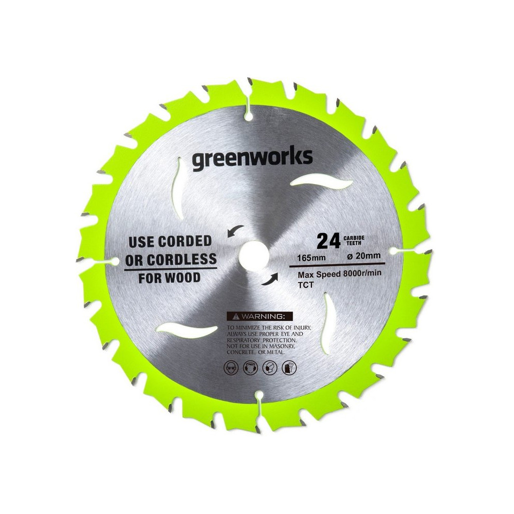 Диск пильный 165 мм 24T для циркулярной пилы 1501607 предназначен для циркулярной пилы Greenworks GD24CS165 (1501607). Это аксессуар для аккумуляторной бесщёточной циркулярной пилы.