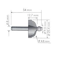 Фреза 25,4х12,7х4,8х9,5мм кромочная калевочная (хв 8мм)