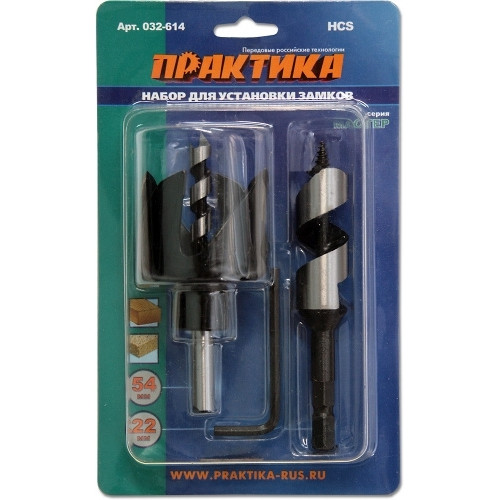Набор для установки замков ПРАКТИКА коронка 54х40мм,винтовое сверло 22мм блистер