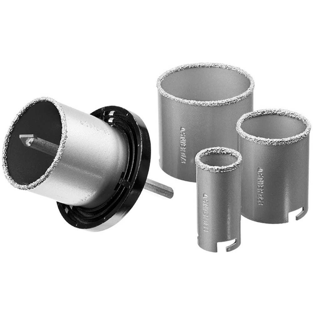 Быстро получить идеально ровное отверстие большого диаметра в кафельной и керамической плитке можно при помощи карбид-вольфрамовых коронок STAYER. Они произведены на современных автоматизированных линиях и надежны благодаря высокотемпературной спайке корпуса и карбид-вольфрама. Коронки применяются на дрелях и легких перфораторах в безударном режиме для точной резки отверстий в облицовочных материалах, ячеистом бетоне, кирпиче и гипсокартоне.