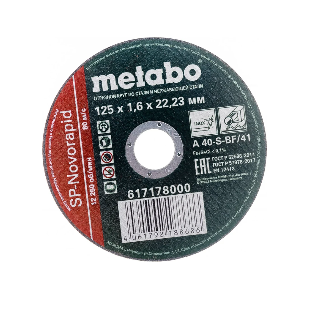 Круг отрез. нерж SP-Novorapid 125x1.6x22,2 мм RU.
