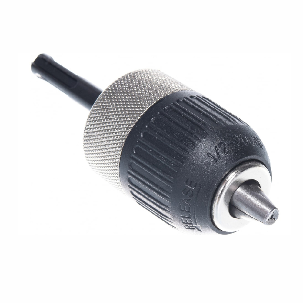Патрон быстрозажимной с адаптером SDS+ ПРАКТИКА 13 мм, 1/2"-20UNF (1шт.) блистер 031-006 предназначен для моментального зажима насадок, миксеров, сверл шуруповертом или дрелью, без использования специального затягивающего ключа. Зажимной механизм защелкивается моментально, достаточно провернуть его до упора. Сверла зажать можно различного диаметра: от 2 мм до 13 мм. Это существенно облегчает работу мастера и убирает необходимость использовать множество техники, теперь все заключается в одном. Изделие устанавливается на инструменты с разъемом шпинделя 1/2 дюйма или 20UNF. Модель упакована в индивидуальный прозрачный пластиковый блистер.
