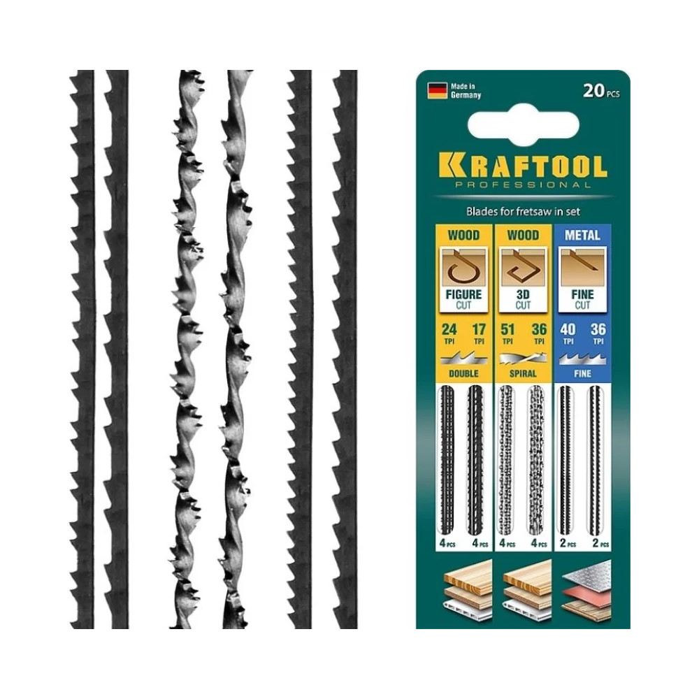 Набор полотен для лобз., двойной зуб: №3(4), №5(4), спиральн: №1(4), №3(4), по мет: №3(2), №5(2), 20 предназначен для пропила различных материалов (дерево, металл). Изготовлены из стали с высоким пределом прочности, что обеспечивает увеличенный срок службы. Прецизионная заточка зубьев обеспечивает точность и скорость выполнения работы.