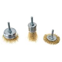 Набор корщеток: венчик 25мм; колесо 50мм; чашка 50мм 38563 предназначены для снятия старой краски и ржавчины. Набор обеспечивает обработку различных поверхностей, в том числе в труднодоступных местах. Для продолжительного срока службы щетина выполнена из латунированной стальной проволоки.