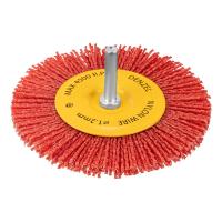 Щетка для дрели, 100 мм, Плоская, со шпилькой, нейлоновая щетина// Denzel — насадка для дрели, предназначенная для выполнения шлифовальных работ по пластику, древесине, стали и цветным металлам. Щетина изготовлена из высококачественного нейлона с нанесенным абразивом из оксида алюминия. Щетка оптимальна для деликатного удаления загрязнений, краски, пятен ржавчины с твердых поверхностей. Позволяет придать шероховатость поверхности, подходит для браширования древесины. Благодаря плоской форме насадка удобна для обработки пазов, изгибов и угловых соединений.