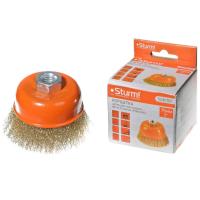 Корщетка-насадка для дрели 5240903 чашеобразная мягк.75мм,хвост 6мм,латун.волн.проволок.Sturm!
