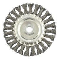 Щетка плоская для УШМ (125 мм; М14; 0.35 мм) MATRIX 74633 является сменным элементом для угловых шлифмашин. Применяется для шлифовки, полирования, зачистки от лака, краски и коррозии различных поверхностей и изделий. Рабочая часть состоит из скрученной в пучки стальной проволоки диаметром 0.35 мм. Специальная форма щетки в виде диска и упругие плетеные пучки позволяют работать в труднодоступных местах.