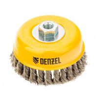 Щетка для УШМ, 75 мм, "Чашка", крученая нержавеющая проволока 0,5 мм, М14// Denzel
