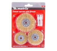 Набор щеток д/дрели 3шт., 3 плоские, 50-63-75мм со шпильками металлич. "MATRIX"