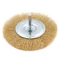 Щетка д/дрели 100мм, плоская со шпилькой, латунир. витая проволока//MATRIX является сменным элементом для дрелей. Применяется для зачистки от лака, краски и ржавчины различных поверхностей и изделий. Рабочая часть состоит из стальной проволоки с латунным покрытием.