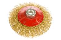 Корщетка, тип "колесо" с наклоном, гайка М14, стальная волнистая латунированная проволока 115 мм