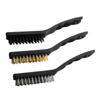 Для очистки небольших поверхностей от краски и ржавчины, а также удаления различных загрязнений. Трехрядные. В наборе: - щетка стальная; - щетка стальная латунированная; - щетка нейлоновая. Материал: пластиковая ручка, щетина из нейлона и стальной витой проволоки.