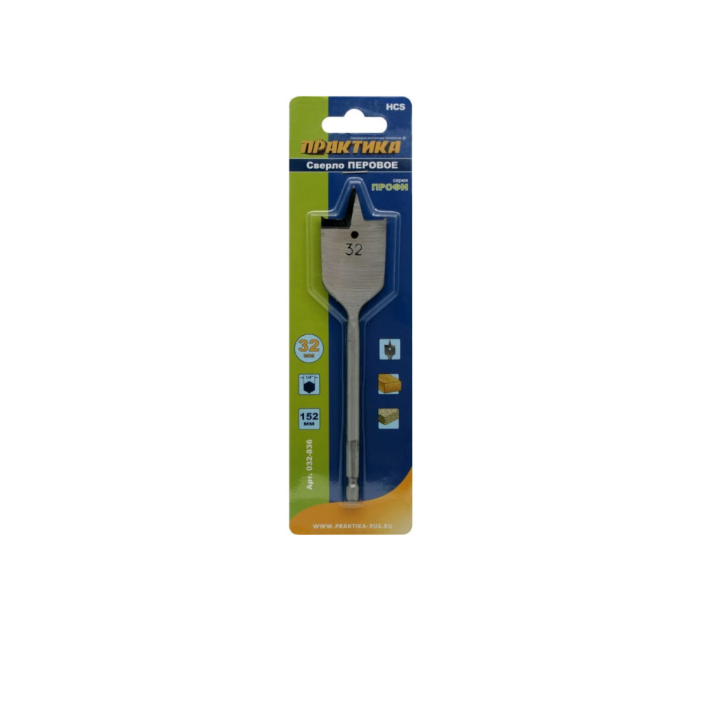 Сверло ПРАКТИКА перовое по дереву 32х152мм в блистере.