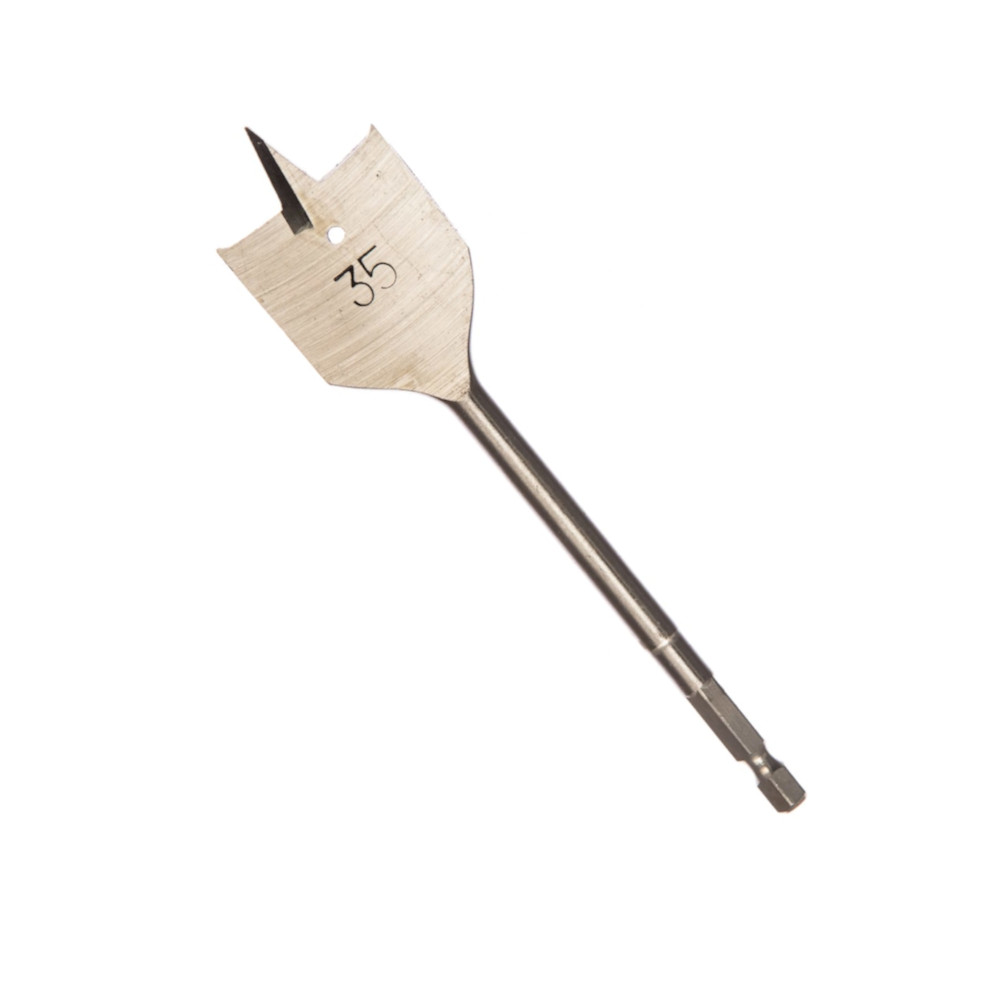 Сверло перовое изготовлено из углеродистой стали. Твердость режущих кромок 45–54 HRС. Может использоваться с ручной механической и электрической дрелями, а также сверлильными станками. Имеет плечевое заострение. Хвостовик шестигранной формы предотвращает проворот сверла в патроне.