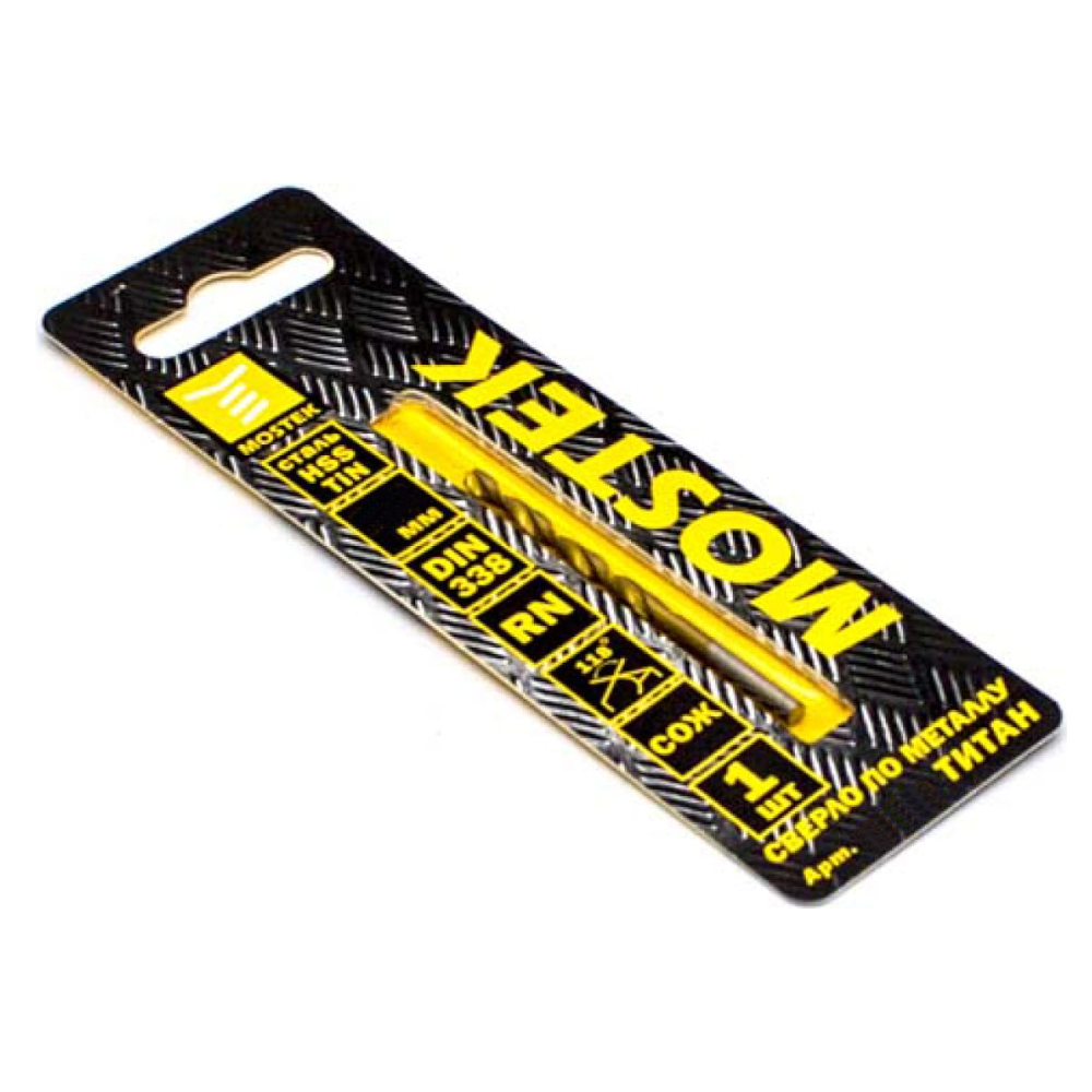 Сверло по металлу MosTek 10,0 мм HSS-TiN (титан - нитридное покрытие) DIN 338 RN (1 шт в блистере) (