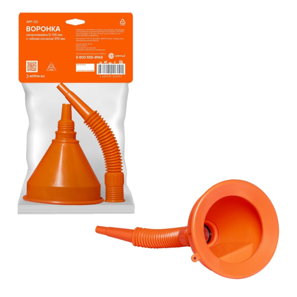 Воронка непроливайка с фильтром и гибким носиком Д 145 мм, 390мм пластик оранжевая AIRLINE APF-02