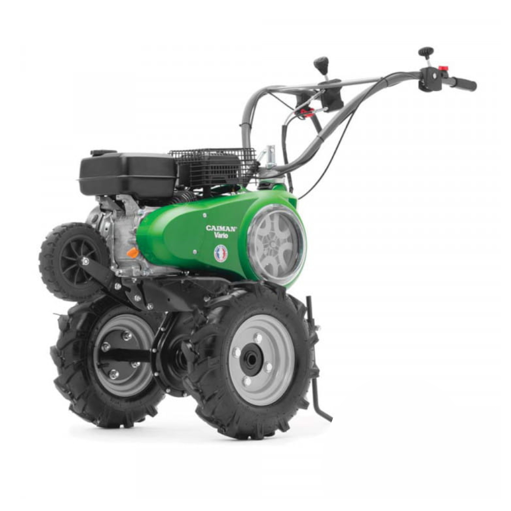 Разработана совместно с ведущим французским автоконцерном. Дает возможность выбирать оптимальный режим работы в зависимости от условий работы (типа почвы, навесного оборудования): движение вперед с вариативным изменением скорости вне зависимости от нагрузки, движение вперед с с вариативным изменением скорости вне зависимости от нагрузки на пониженной передаче, задний ход. Скорость регулируется от 28 до 165 об/мин. "Линейное" последовательное управление скоростью движения: реверс центрирован между 1 и 2 передачей, поэтому он доступен в любой момент. Привод переднего навесного оборудования.Позволяет использовать газонокосилку, роторную косилку, снегоотбрасыватель, щетку (опции). Благодаря этому вы можете работать с мотоблоком круглый год!Пневматические колеса с сельскохозяйственным протектором (в комплекте) .Дают возможность работать как с передним, так и задним навесным оборудованием. Четырехтактный бензиновый двигатель Caiman Green Engine 212CC.Экологичный мотор премиум-класса оснащен губчатым фильтром в масляной ванне, который превосходно очищает сильно запыленный воздух, чугунной гильзой цилиндра, повышающей износостойкость и надежность. Изменение угла наклона клапанов на 25 градусов значительно увеличило объем впускаемого воздуха и отводимых выхлопных газов, и как следствие, мощность. Особая форма камеры сгорания позволила повысить эффективность сжигания топлива и снизить уровень вредных выбросов.Двигатель сертифицирован для использования в странах Европы и Японии. Цепной разборный редуктор с "пожизненной" смазкой.Обеспечивает на выходе минимальные потери мощности. Не требует обслуживания, допускает замену отдельных деталей в случае необходимости. Влагонепроницаемые уплотнения редуктора (опора фрез) защищают внутренние подшипники от проникновения грязи и песка и увеличивают срок службы трансмиссии. Культиваторные фрезы Razor Blade из закаленной стали.Благодаря специальной конфигурации, фрезы входят в почву под определенным углом и способны справиться с любым типом почвы.Эллиптическая складная регулируемая рукоятка.Вертикальная регулировка дает возможность комфортно работать пользователю любого роста. Регулировка в горизонтальной плоскости позволяет оператору не заступать на обработанную зону, а также работать вплотную к ограждениям или сооружениям. Двусторонний сошник Регулируется по высоте для изменения рабочей глубины. Прямой конец сошника позволяет усилить проникновение в твердую почву, а загнутый обеспечивает устойчивое продвижение по вязкой земле.