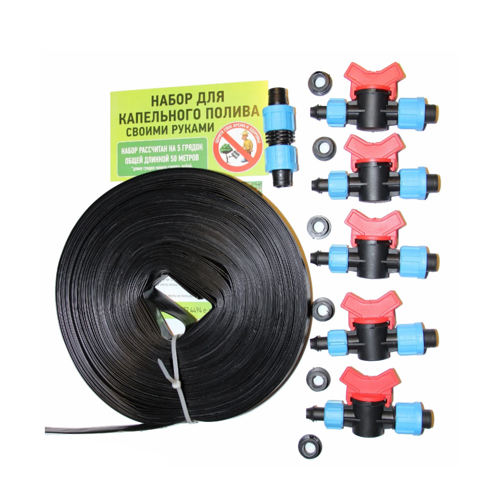 коннектор стартовый 5 шт, уплотнительная манжета 6 шт, коннектор ремонтный, лента капельная