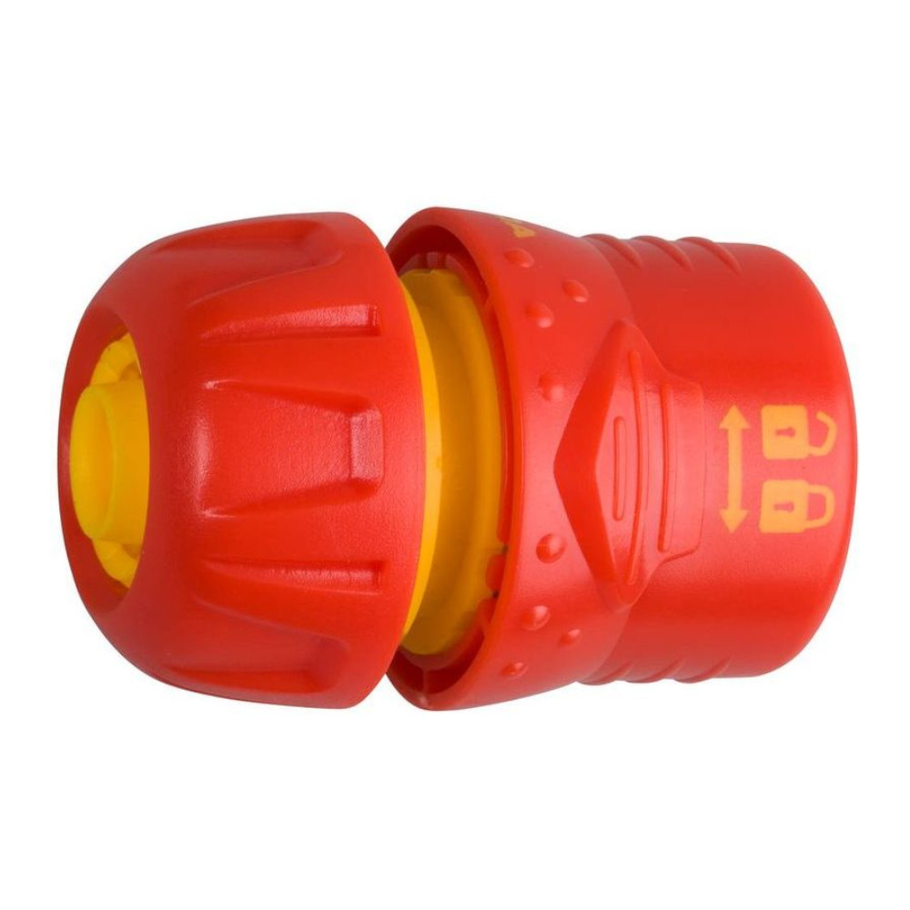 Соединитель GRINDA пластмассовый с автостопом и запирающимся механизмом, 1/2" используется для надежного соединения шланга диаметром 1/2” с поливочной насадкой, адаптером, переходником или тройником. Запирающий механизм осуществляет блокировку соединения. Подача воды прекращается при снятии поливочной насадки.