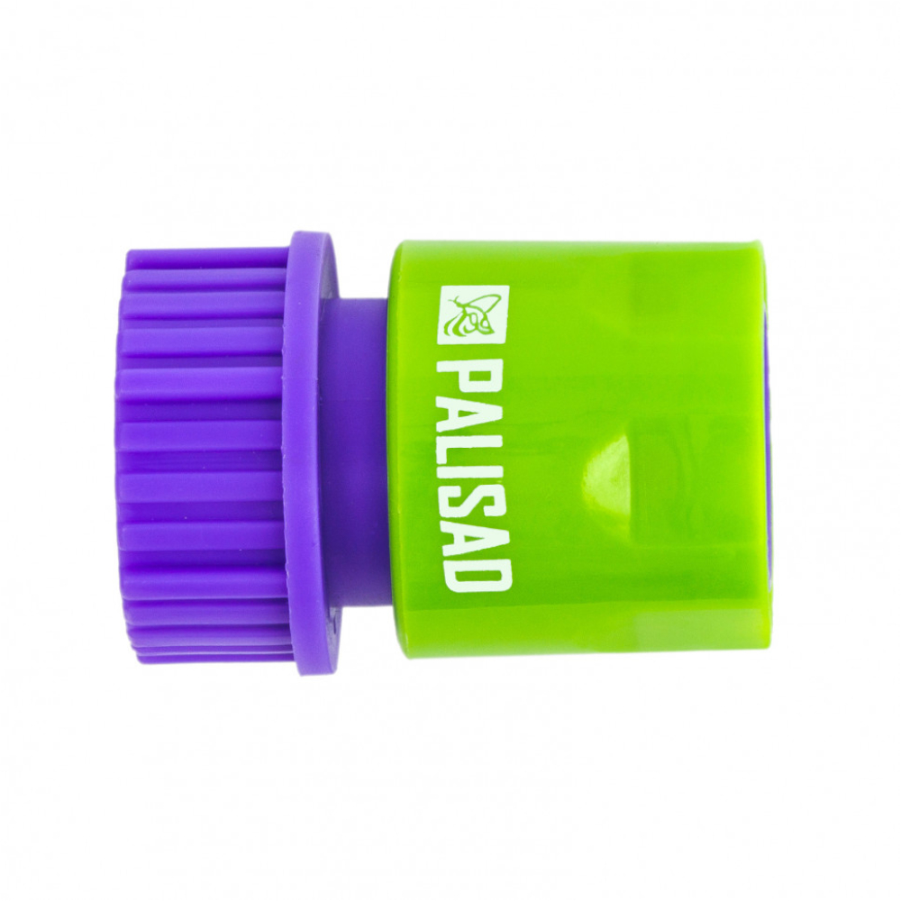 Пластмассовый быстросъемный соединитель Palisad с аквастопом устанавливается на выход отвода или крана с внешней резьбой диаметром 3/4 дюйма. Используется для подключения шланга к источнику водоснабжения через переходник. Быстроразъемное соединение сокращает время монтажа поливочной линии. Коннектор будет полезен для организации системы орошения на приусадебном участке.